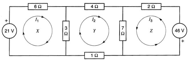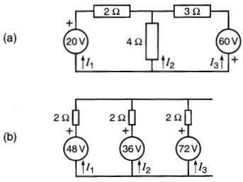 8-8 En utilisant la méthode des courants de maille, déterminer les valeurs de I1 et de I3 dans la Fig. 8-41, circuits (a), (b).