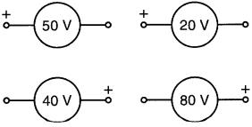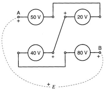 Soit quatre sources ayant les tensions et polarités indiquées a la Fig. 8-8a.