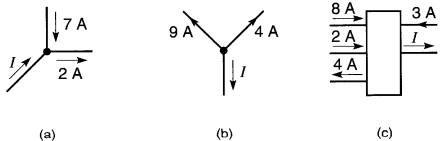8-5 Trouver la valeur et le sens réel du courant I pour les nceuds (a), (b), (c) de la Fig. 8-39.