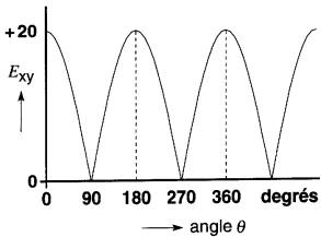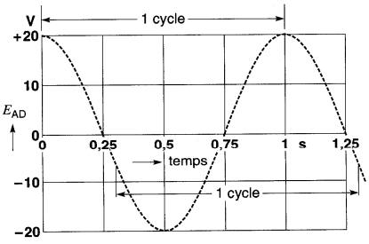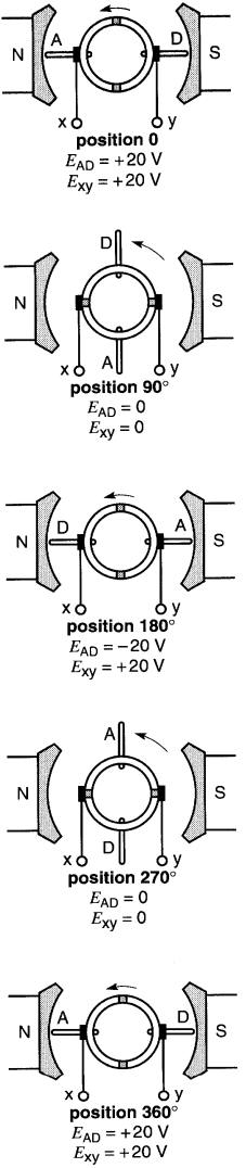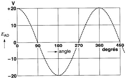 En effet, à la position 0°, EAD = +20 V et Exy = +20 V. Quand le premier quart de tour est terminé (position 90°), la tension induite est nulle, et l'inversion des contacts est en train de s'effectuer.