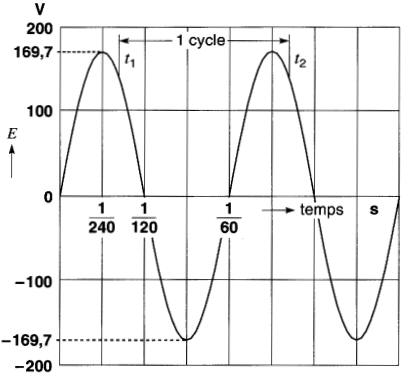 Lorsqu'une tension périodique complète un cycle en 1/60e de seconde, sa fréquence est de 60 cycles par seconde, car 60 cycles sont répétés à chaque seconde.
