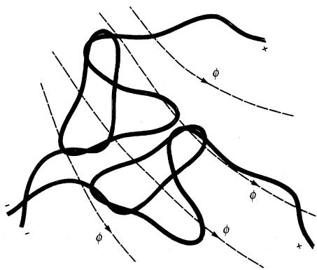 Figure 17-2 Positions successives d'un conducteur de forme tordue coupant de façon aléatoire un champ magnétique quelconque.