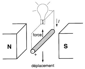 Selon le principe III de l'électromagnétisme, lorsqu'on déplace un conducteur dans un champ magnétique de façon à «couper» des lignes de force, il apparaît une différence de potentiel entre ses extrémités.