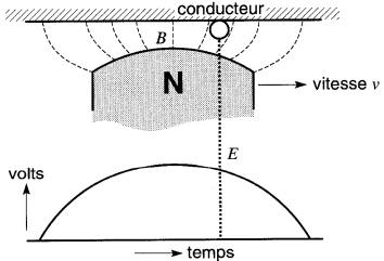 a. La tension induite est maximale lorsque le conducteur est perpendiculaire au flux;