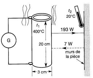 Si elle fonctionne à une température de 400°C lorsqu'on la dépose dans une pièce dont la température ambiante est 20°C, calculer la puissance nette dégagée par radiation.