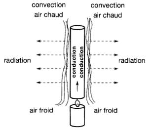 Figure 1-21 Transport de la chaleur par conduction, par convection et par radiation.