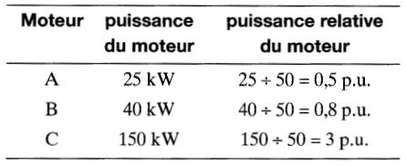 Supposons, par exemple, que trois moteurs possèdent des puissances de 25 kW, 40 kW et 150 kW. Adoptons comme base une puissance PB de 50 kW.