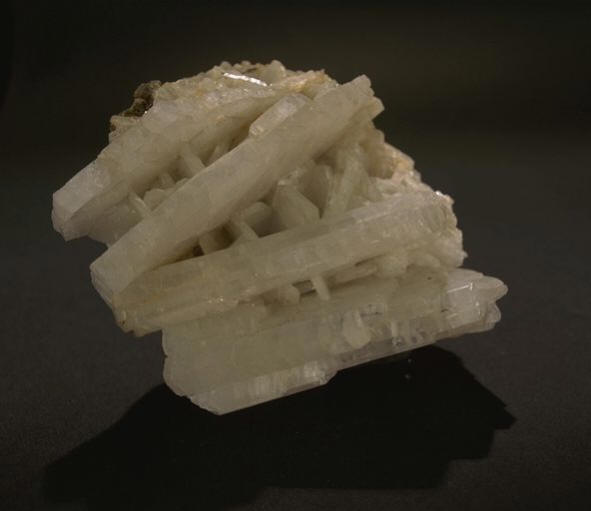 "habitus variable : généralement en cristaux tabulaires plats, à macles polysynthétiques extrêmement fréquentes, parfois en cristaux lamellaires (faciès ""cleavelandite"") également masses lamellaires ou grenues" |