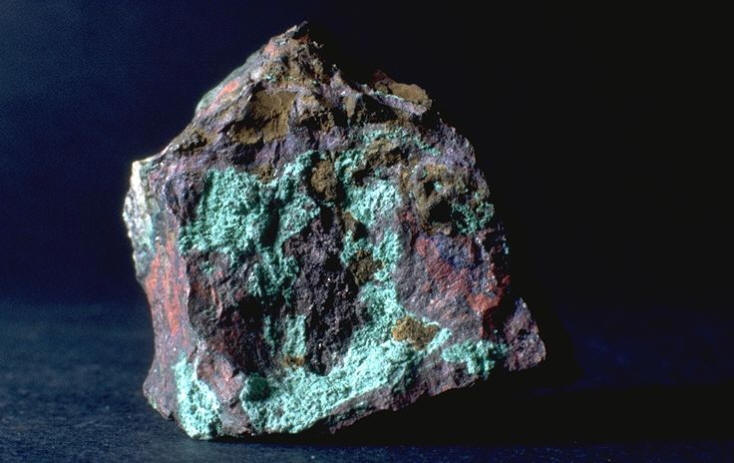 Encroûtements sur cuprite (Chili), - 3,5 cm - collection Muséum de Paris, cliché U. de Cayeux, BRGM |