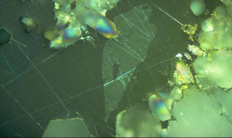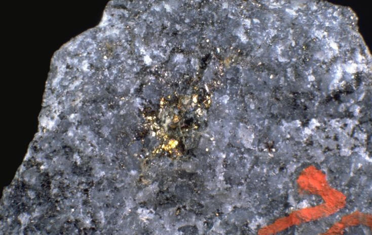 Plages associées à or sur quartz (Cola Spring, Colorado, Etats-Unis), - Plage de 5 mm- collection Muséum de Paris, cliché U. de Cayeux, BRGM |