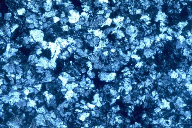 rarement en petits cristaux rhomboédriques, surtout en masses grenues à cryptocristallines, concrétionnées ou fibreuses |