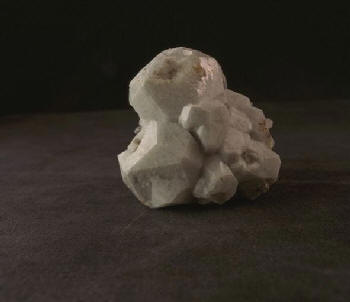 généralement en cristaux trapézoédriques, très rarement en cubes, parfois en masses grenues |