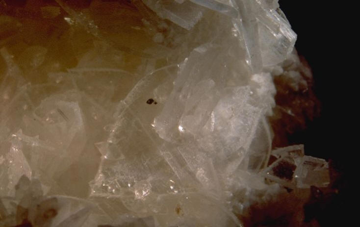Elle est présente dans les dépôts sédimentaires de type évaporitique, mais également comme produit d’altération hydrothermale de roches calcaires et dolomitiques. Les cristaux isolés sont rares, tabulaires ou prismatiques. En général, en masses cristallines montrant trois clivages trirectangulaires, parfois finement granulaire; un peu écailleuse. En fibres parallèles, radiées et souvent courbes, ou en concrétions. Transparente à translucide. Eclat vitreux nacré, légèrement gras. Incolore, souvent teintée de gris-bleu ou de violet, plus rarement rougeâtre, brunâtre, mauve, rose, blanc, souvent gris plus ou moins foncé. De grands amas constituent les sommets des dômes salins du Texas, de France et d’Allemagne.