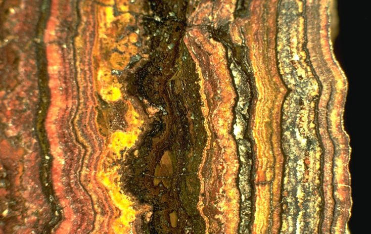 Texture rubanée avec goethite (Chaillac, Indre), - 10 cm - collection Muséum de Paris, cliché E. Gonthier |