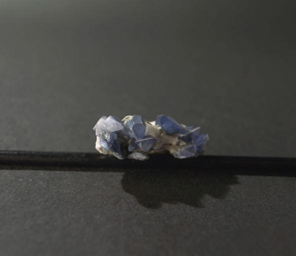 Minéral très rare découvert exclusivement dans de petits filons traversant un schiste à glaucophane intercalée avec une serpentine. En cristaux prismatiques tabulaires, tronqués par trois faces pyramidales triangulaires. Parfois en bipyramides trigonales. Transparent à translucide. Éclat vitreux. Couleur bleu saphir, bleu clair à bleu foncé. Le seul gisement connu est San Benito en Californie.