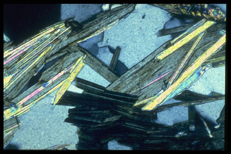 cristaux (lamelles pseudo-hexagonales aplaties) rares, surtout en agrégats écailleux , lamellaires ou vermiculés |