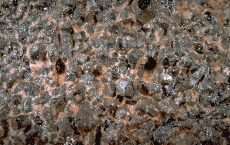 généralement en grains arrondis, en masses, cristaux très rares |