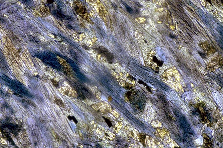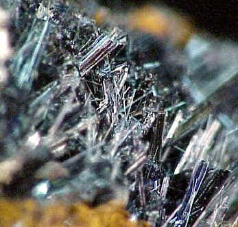La crossite (non documentée photographiquement) est une amphibole intermédiaire entre le glaucophane et la riébeckite. Sur la photo, est représenté un glaucophane aciculaire fortement pléochroïque dans les teintes bleues. (Schiste à glaucophane, Corse, France). Ce minéral appartient au groupe des amphiboles sodiques. C’est un terme intermédiaire de la série glaucophane - riébeckite. C’est un minéral présent dans les roches du métamorphisme régional de basse température et haute pression (faciès des schistes à glaucophane) ; il est aussi présent dans les éclogites. En cristaux souvent indistincts, plus rarement en prismes allongés ; en général il forme des masses lamellaires, fibreuses, grenues ou bacillaires. Opaque à translucide. Éclat vitreux à nacré. Couleur grise à bleu grisâtre. Poussière grise. Les échantillons très connus proviennent de Custer et de San Benito (Californie).