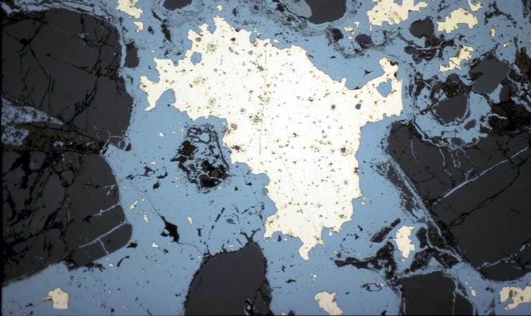 Blanc-gris bleuâtre. Le ton bleu apparaît particulièrement au contact du cuivre natif et de la chalcopyrite. |