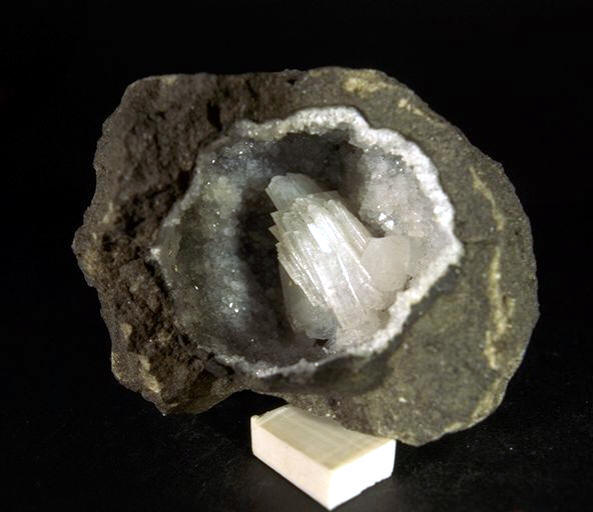 Minéral appartenant au groupe des zéolites. Typique des vacuoles dans les basaltes. En cristaux aplatis. Incolore à blanc. De beaux cristaux proviennent d'Islande et de Nasick (Inde).