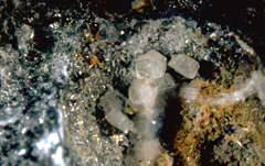 cristaux tabulaires à contour hexagonal et en masse granulaire