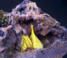 Minéral d’origine secondaire formé dans lea zone d’oxydation des gisements de zinc. Généralement en agrégats divergents, radiés de cristaux prismatiques lamellaires allongés. Les grands cristaux présentent des terminaisons pyramidales multiples. Translucide à transparente. Eclat résineux très vif. Couleur incolore à blanc légèrement verdâtre, jaune canari à jaune cire. Les plus beaux cristaux proviennent de Mapimi (Mexique).