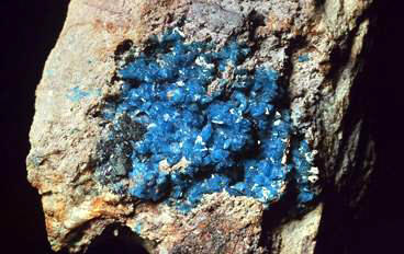 C’est un minéral rare, typique de la zone d’oxydation des gisements de cuivre. En cristaux minces et lenticulaires, d’apparence octaédrique et aplatis. Transparente à translucide. Eclat vitreux à résineux. Couleur bleu pale. Quelques magnifiques cristaux ont été trouvés à Redruth et Saint-Day (Cornouailles, Angleterre).