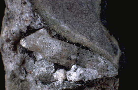 La meïonite appartient au groupe des scapolites et constitue le pole calcique de la série qu’elle forme avec la marialite. Ce minéral apparaît principalement dans le métamorphisme régional et dans les skarns (marbres, gneiss calciques); il est parfois présent aussi dans certaines pegmatites et dans des roches basiques altérées hydrothermalement. Transparente à translucide, d’éclat vitreux, la meïonite est de couleur variable: incolore, blanche, grise, bleuâtre, verdâtre, jaune, rose, violette... Elle forme des cristaux prismatiques striés parallèlement à [001] et aux terminaisons très souvent pyramidales aplaties. Ses cristaux peuvent atteindre jusqu’à 700mm. Très répandue, sauf les termes purs, de très bons cristaux de meïonite sont connus dans de nombreuses localités (Italie, Finlande, C.E.I.)