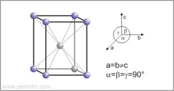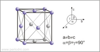 Le solide primitif est un prisme triclinique. Les trois axes sont de longueurs différentes et les angles sont tous différents de 90°. Il comporte deux classes de symétrie ; la classe hémiédrique, ne comportant aucun élément de symétrie, ne compte pas de représentant dans la nature.