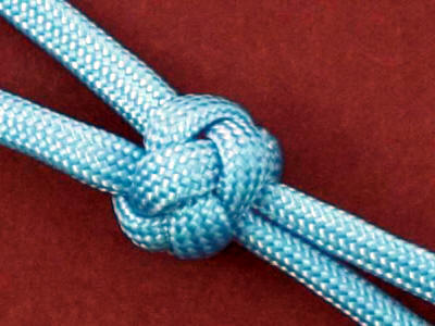 Quelques étapes plus loin qu'un Carrick Bend (illustré ci-dessous), le nœud en diamant à 2 brins est un moyen rapide d'ajouter un tissage cylindrique décoratif à un cordon autrement terne. Le nœud est également le fermoir qui sera utilisé pour la plupart des bracelets en paracorde présentés dans cette section.