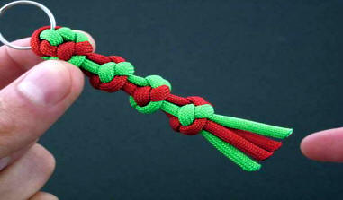 21. Faites 3 à 4 nœuds en losange, espacés d'un pincement de pouce les uns des autres. | 22. Une fois la longueur souhaitée atteinte, coupez et brûlez soigneusement les extrémités. |