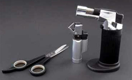 1. Commencez par posséder les éléments suivants : des ciseaux de coiffeur et un briquet au butane |