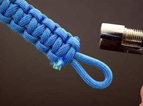 8. Félicitations, vous avez réussi à sceller les extrémités de votre attache en paracorde en place ! |