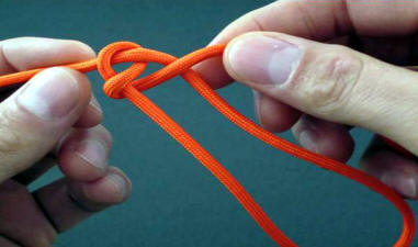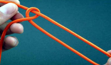3. Accrochez ensuite l'extrémité courante à droite et à travers le centre de la boucle, à nouveau. | 4. Répétez l'étape 2... |