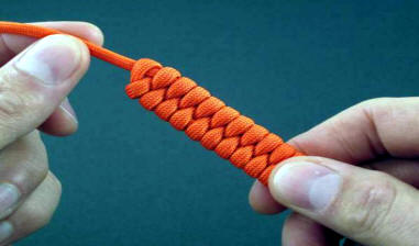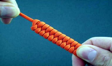 5. ...et étape 3, en empilant fermement chaque cordon « en croix » contre celui du dessus,... | 6. ...jusqu'à ce qu'il reste au moins 5 pouces d'extrémité courante. |