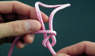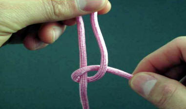 9. ...autour du bord gauche de la boucle, et sous elle-même. | 10. Serrez fermement le nœud réalisé. |