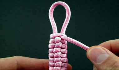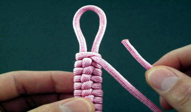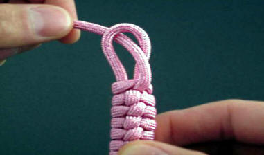 11. Répétez les étapes 7 à 10 jusqu'à ce qu'il reste au moins 5 pouces d'extrémité courante. | 12. Pour solidifier la pièce, prenez en main la pointe du bout courant. |