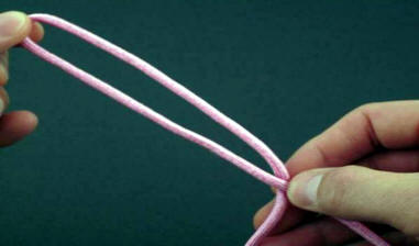 5. ...autour du bord gauche de la boucle, et sous elle-même. | 6. Serrez fermement le nœud réalisé. |