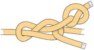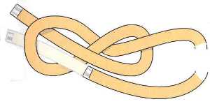 Application du noeud en huit, son principe est d'être autobloquant ; cela permet lorsqu'on ficelle un paquet, de pouvoir facilement exécuter la demi-clé qui consolidera définitivement le paquet.