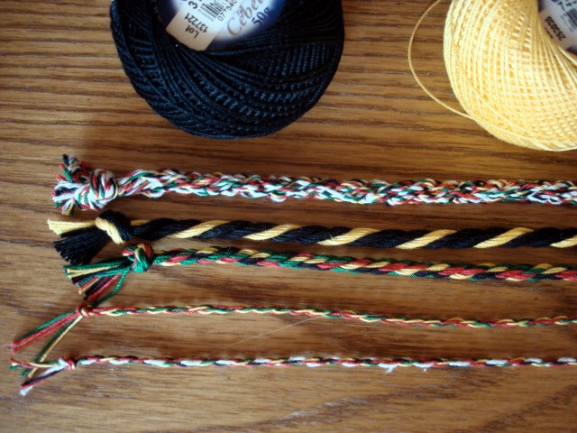 Vous pouvez faire des cordes multi couleurs en prenant des fils (carets) de couleur différentes pour former les torons.