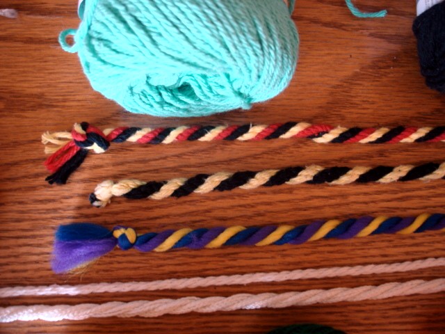 2° Faire des petites cordes pour les carets et retorde ces petites cordes (carets) pour les torons.