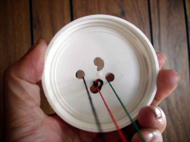 Attacher ces 9 fils à un point d’attache. Ils forment les neuf carets.