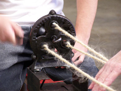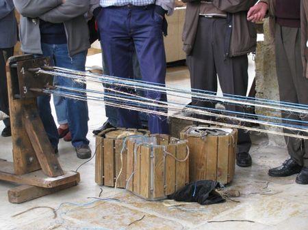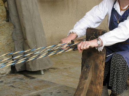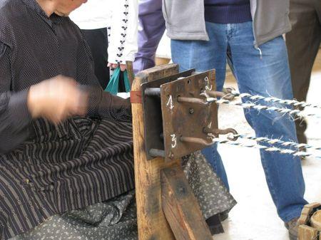 Je vous laisse admirer les engins qui, menés par deux ou trois personnes emberlificotent des cordelettes. Une dame tourne une manivelle d'un côté, ensuite c'est le tour de l'autre…