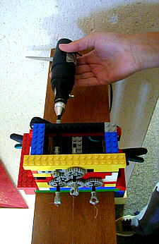 Un deuxième moteur est utilisé. Là aussi il faut réduire la vitesse de rotation de la mini perceuse comme précédemment. |