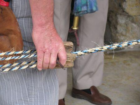 Le "COCHOIR" appelé aussi "TOUPIN" est maintenu fermement par le Maître cordier qui règle la torsion tout en se déplaçant du chantier A vers le chantier B. Le cordage est plus ou moins serré selon que l'on veut obtenir une corde raide ou une corde souple.