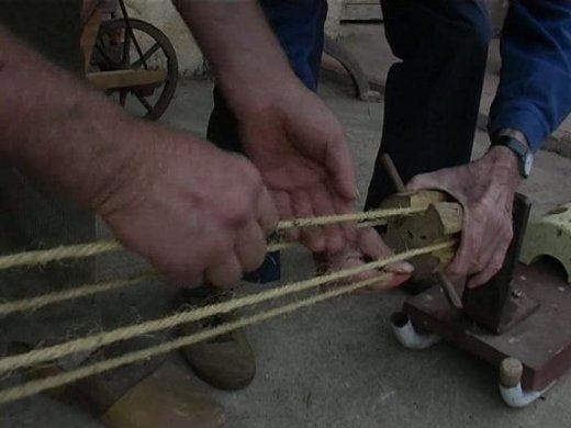 Il ne reste plus qu'à tourner vers la droite trois torons pour obtenir le cordage.