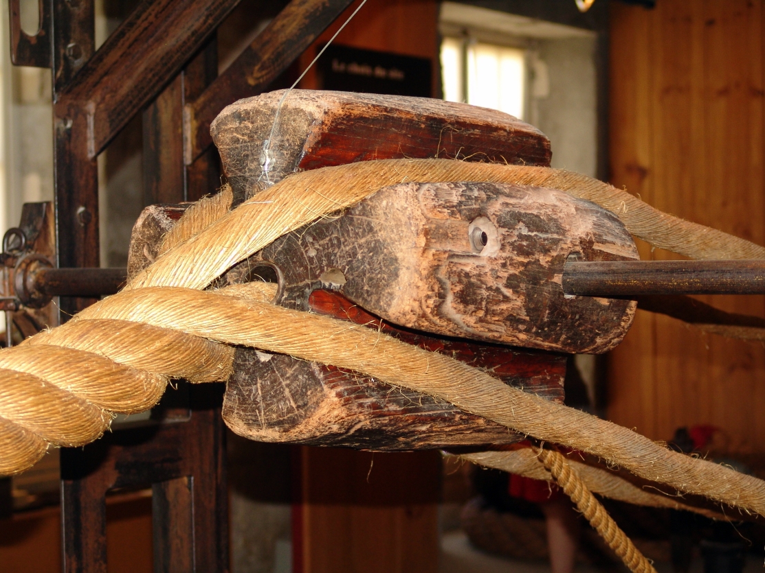 Pour fabriquer les cordes utilisées dans les fermes (cordes à veaux, cordes de levage), on se servait d’un « moule à cordes ». Il se compose de deux parties : l’une appelée rouet comporte généralement quatre crochets mus par une seule manivelle, à l’autre côté se trouve le carré, c’est-à-dire un seul crochet pivotant fixé sur un poteau lui-même monté sur des roulettes.
