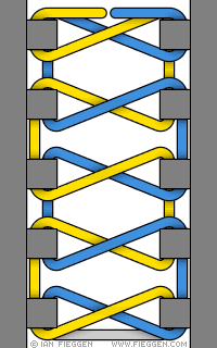 Spécifique aux chaussures à ganse, ce laçage ressemble à une série d’infini qui est représenté par le symbole ∞. Ce laçage fonction bien avec des lacets minces car chaque ganse doit permettre le passage en double du lacet.
