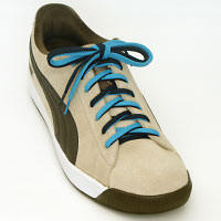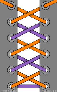 Utiliser deux lacets plats réunis ensemble ou des lacets avec une couleur différente de chaque côté. Lorsque que vous utilisez deux lacets, assurez-vous qu’ils soient assez minces car chaque œillet doit pouvoir s’accommoder avec deux couches de lacets.
