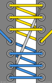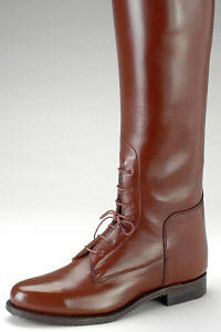 Ce laçage est fait pour l’équitation ou la moto. Il est serré en haut et plus lâche près des chevilles. Une partie du lacet zigzag à partir du bas, l’autre à partir du haut et ils sont noués au milieu.
